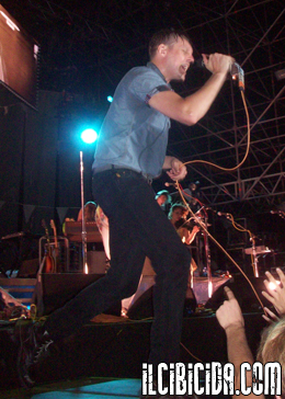 A parte i propri (duri e puri) specifici gusti musicali, quali sono gli artisti che hanno caratterizzato le rispettive epoche, lasciando il segno in termini di contributo alla storia della musica rock? Scusandomi per le clamorose omissioni (tra cui tanti musicisti che purtroppo non hanno mai avuto il grande successo che avrebbero meritato), potrei azzardare qualche nome per decennio. Anni ’50: Elvis Presley. Anni ’60: Beatles e Rolling Stones. Anni ’70: Pink Floyd, Led Zeppelin, Sex Pistols. Anni ’80: U2, Cure, Depeche Mode. Anni ’90: Nirvana e Radiohead. E gli anni duemila (orribile modo per definire lo scorso decennio)? Il tempo dirà, ma a parte i Sigur Ros (che certamente rock non sono), l’unica band che si può menzionare con una certa sicurezza sono gli Arcade Fire. E non potrebbe essere altrimenti: totalmente ignorati dai nostri media musicali (ditemi le volte che li avete sentiti alla radio o visti su MTV…), dopo appena tre album riescono ad attirare oltre seimila persone all’Arena di Milano, alla modica cifra di 43 euro, con un altro concerto italiano alle porte. Ho snocciolato queste cifre perchè se si raggiungono questi numeri con una promozione mediatica pari allo zero, vuol dire che dietro c’è la presenza di qualcosa di straordinario: un movimento eterogeneo di appassionati che rimane stregato dalla musica dei canadesi, totalmente refrattari ad ogni tipo di moda, che certifica (se ce ne fosse ulteriore bisogno) come i ragazzi di Montreal stiano facendo la storia della musica in questi anni avari di reali novità. La serata, che fa parte del Milano Jazzin Festival (cartellone notevole, ma cosa c’entra con il jazz?) è aperta dagli australiani Cloud Control e dai White Lies. Se i primi risultano essere una piacevole sorpresa e meritano ascolti futuri più approfonditi, la band di Harry McVeigh è protagonista di una esibizione che merita la sufficienza, ma al contempo dimostra tutti i difetti degli inglesi. Il nuovo lavoro “Ritual” – al di là di qualche spunto interessante – non è certo all’altezza dell’ottimo disco d’esordio, ed i limiti live del gruppo fanno il resto: peccato, perchè si pensava ad un futuro migliore per una band invece condannata a fare da eterno sparring partner a colleghi più illustri, sulla scia degli Editors di un paio di anni fa.