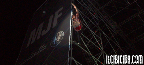 E’ però doveroso spezzare una lancia in favore dei malcapitati White Lies: un conto è fare da band di supporto per Franz Ferdinand e Killers, un altro è aprire l’esibizione degli Arcade Fire, con i quali ogni paragone risulta assolutamente impietoso. Era la prima volta che assistevo ad un loro concerto, e vi garantisco che non è mai facile esprimere un parere su un live per il quale nutri già in partenza aspettative enormi: eppure il risultato della serata va oltre ogni più rosea previsione della vigilia. Va fatta prima di tutto una importante considerazione: questo è probabilmente il tour della definitiva consacrazione per i canadesi. Ai primi due splendidi album “Funeral” e “Neon Bible”, che con la loro musica epica e sognante avevano fatto già gridare al miracolo, si è aggiunto “The Suburbs”, un lavoro più introspettivo e vario, che non migliora la musica degli Arcade Fire, ma semplicemente la completa. Così, in una setlist priva di riempitivi e contraddistinta da un livello qualitativo altissimo, trovano spazio capolavori passati come la bucolica No Cars Go, le spettrali My Body Is A Cage e Intervention, ma anche brani nuovi come le rockeggianti Ready To Start e Month Of May, l’ipnotica Rococo e soprattutto The Suburbs, canzone manifesto dell’ultimo album, accompagnata dalle splendide immagini di Spike Jonze. Con una perfetta alternanza vocale tra Win Butler e Règine Chassagne, si arriva al gran finale: il perfetto binomio Neighborhood #3 (Power Out) – Rebellion (Lies) ha visto (oltre alla presenza di una ventina di imbecilli che sentivano l’inspiegabile esigenza di pogare), William Butler rischiare seriamente la vita (arrampicatosi su una impalcatura laterale ad almeno quindici metri di altezza, ha continuato tranquillamente a suonare le percussioni come se nulla fosse). Dopo la classica e strategica prima uscita di scena, gli Arcade Fire ritornano per i bis, che mandano ulteriormente in estasi i presenti (sottoscritto compreso): dopo la corale Wake Up, tocca al pop elettronico di Sprawl II chiudere la serata. Una scelta coraggiosa, che dimostra l’ulteriore maturazione degli Arcade. Una scelta che premia, perchè risulta essere il brano più bello ed emozionante della serata, con Règine impegnata in un balletto colorato e delicato come la sua voce. Accesi i riflettori dell’Arena, dò un’occhiata agli sguardi che mi circondano: sono sguardi estasiati, sguardi riappacificati con se stessi, sguardi che non pensano al mutuo da pagare, al lavoro che manca o alla ragazza che ti ha mollato. La gente è felice, perchè ha partecipato – nel suo piccolo – ad un pezzo di storia della musica.