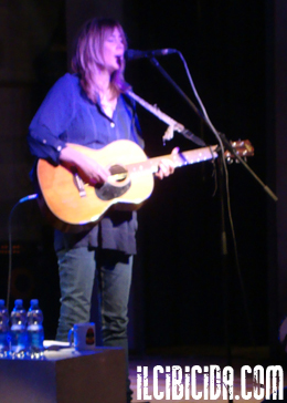 Duo acoustic show. Così era stata annunciata questa tappa italiana di Beth Orton, un’unica data nel nostro Paese per presentare dal vivo “Sugaring Season”, lavoro che l’ha vista tornare sulle scene dopo sei anni e la maternità. E quale miglior modo per rifarsi viva che ripartire da una dimensione intima, tanto per la location scelta (l’ottima sala, decisamente jazz, de La Salumeria della Musica) quanto per il “duo” che l’accompagna, ovvero il marito Sam Amidon. Una serata in famiglia, verrebbe da dire. E’ infatti lo stesso Amidon ad aprire per la moglie, eseguendo qualche brano anch’egli in acustico, accompagnando la sua voce ai soli banjo e chitarra. Il pubblico applaude convinto, la verve anche ironica dei vocalizzi di Amidon si fa decisamente apprezzare. Alle 22.15 bollate sale sul palco Beth e tocca subito a Magpie, brano che apre la sua esibizione milanese così come il nuovo album. Risulta chiaro fin dai primi accordi come gli arrangiamenti dei pezzi saranno ridotti all’osso per tutta la durata del concerto. Il che fa perdere in parte la ricercatezza delle incisioni in studio ma, parallelamente, mette in evidenza quello che è poi l’elemento fondamentale per cui in questo venerdì sera qualche centinaio di persone ha scelto La Salumeria della Musica: la voce della Orton. Garbatamente modulata, cristallina come la pioggia delle campagne inglesi, il protagonismo vocale di Beth è sempre in primo piano ma mai presuntuoso. Gran parte della setlist è, com’era inevitabile, incentrata su “Sugaring Season”: ci sono State Of Grace, Mystery, Poison Tree, la meravigliosa e ammaliante Something More Beautiful, Call Me The Breeze e Candles. Non è forse un caso che manchino, dalla tracklist dell’album, brani come “Down Chorus” e “Last Leaves Of Autumn” (che, lo ammettiamo, aspettavamo con ansia), fra i più articolati musicalmente parlando dell’intero lavoro, quindi forse poco “adatti” alla minimale strumentazione on stage. Per il resto, ci sono quei pezzi che t’aspetti Beth proponga: le più recenti Safe In Your Arms e Shopping Trolley, eseguite in sequenza, e poi suoi classici come Central Reservation – più che applaudita – e Sugar Boy. Il marito l’asseconda a tratti nei controcanti, altre volte invece si fa da parte lasciando tutto nelle mani di Beth. Quando il set finisce è la volta del consueto encore, affidato a Stolen Car e O-o-h Child, cover di un pezzo soul dei Five Stairsteps che chiude l’intera serata dopo poco più di un’ora. La Orton si conferma una delle voci più eleganti in circolazione e questa sua svolta marcatamente folk le rende la giustizia che merita.