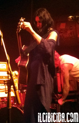 Uno degli apici della serata è rappresentato da Pale On Pale, pezzo dal sapore fortemente doom, scandito da una batteria che, come una marcia solenne, accompagna il lamento del cantato. La parte finale della canzone è un lungo muro di suono rumoroso, caotico, segnato da un virtuoso assolo di batteria, il termine del quale segna la fine dello show. Un solo encore, Echo, cover dei Rudumentary Peni che ricorda fin troppo i Dead Can Dance e Chelsea si congeda, dopo aver velocemente ringraziato il pubblico. Sono molte le influenze che possono essere ravvisate nella sua musica. La già citata Pj Harvey sopra tutte, ma è possibile avvertire anche un tocco di Siouxsie qua e là, eppure la Wolfe è semplicemente se stessa. Un’artista profondamente ispirata, infestata da demoni e angosce, che per un po’ stasera ha smesso i panni della regina delle tenebre per accoglierci nelle sue intime stanze, salvo poi stordirci a tradimento e riportarci prepotentemente nella gabbia dei leoni. Chelsea Wolfe resta una gemma rara il cui talento è ufficialmente sancito dalla resa live. Un live set sapientemente congegnato e ben equilibrato. Se dovessi sommare in una frase le mie impressioni di questo concerto direi soltanto: Best new act of the decade.