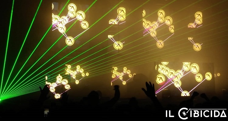 Sarebbe bastata questa gita nella sperimentazione contemporanea e qualche laser qua e là per soddisfare le alte aspettative, ma a ciò s’è unito un lavoro stranianate di visual art dedicato a Torino e all’Italia e contraddistinto dall’ironia a cui ci ha abituati il produttore coi suoi videoclip e cover di dischi: oltre il faccione inquietante di Aphex Twin incollato in presa diretta sul pubblico o su orsetti danzanti, sugli schermi sono comparse immagini distorte di giocatori di Juventus e Torino, Piero Angela, Rita Levi Montalcini, Antonio Gramsci, Lapo Elkann, Andrea Agnelli, Gustavo Rol e Ciccio Graziani, come fosse uno di quegli incubi che ti vengono dopo una serata passata a guardare troppe cazzate in televisione. Il condimento divertente e giocoso di un set ostico, non proprio da serata Erasmus universitaria.