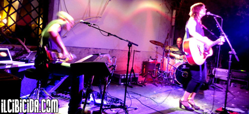 Supportata dalla solidissima batteria di Piero Monterisi e dal polistrumentista Saverio Lanza, produttore e co-autore dell’ultimo album (“Torno a casa a piedi” del 2011), che suona basso, chitarra acustica, chitarra elettrica, tastiere, oltre ad occuparsi con estrema perizia di quelle che in ammmerica chiamano “background vocals” e che noi mangiaspaghetti più tristemente appelliamo “coretti”. Mancava solo che suonasse le dannate marimbas ed il glockenspiel. Lanza fornisce il supporto adeguato per consentire alla Donà di esibirsi con estrema tranquillità e di giocare con il pubblico, come fa con Giapponese (l’arte di arrivare a fine mese), durante la quale chiama una ragazza dalla platea a mimare il testo della canzone, o durante Nel mio giardino, nella quale mima un assolo di tromba (sorprendentemente non suonata dal buon Lanza). Spesso e volentieri Cristina si lancia in citazioni, ricordando Clarence Clemons (sassofonista recentemente scomparso della E-Street Band di Springsteen, del quale la Donà è fan appassionata) durante Ho sempre me, quando gioca col pubblico in una improvvisata Don’t Worry Be Happy, o nella meravigliosa Povera Patria di Franco Battiato, oggi sempre più attuale vista la situazione politica italiana (“Schiacciata dagli abusi del potere / di gente infame, che non sa cos’è il pudore, […] Tra i governanti, / quanti perfetti e inutili buffoni”). In una emozionante Invisibile ricorda memorie catanesi (“…è buffo cantare qui questa canzone.. no, non buffo… meraviglioso”), in quello che curiosamente è uno dei momenti più belli dell’intero live. Cristina saluta dopo più di un’ora e mezza di concerto, inchinandosi al pubblico assieme ai suoi soci come si fa a teatro. E la cosa più divertente è vedere che, se le donne sono perfettamente soddisfatte dallo spettacolo ma non sorprese, i più incantati sono i galletti, i quali custodiranno il segreto di essere stati ammaliati dalla Donà sino al letto di morte. E, onestamente, devo ammettere di essermi lanciato in una furiosa “Jumpin’ Jack Flash” durante il tragitto di ritorno, tanto per sentirmi figo. E, altrettanto onestamente, devo ammettere di aver cercato quanta più roba possibile della Donà appena arrivato a casa. Ma… shhh… non ditelo in giro.