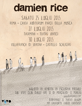 I concerti in solo – almeno quelli più memorabili, in genere – dovrebbero essere appannaggio esclusivo di un parterre selezionato, non molto numeroso, in un luogo non esageratamente dispersivo, con qualche abat-jour ad illuminare la scena e una modesta amplificazione. Per due motivi estremamente semplici. Perché un cantautore dovresti poterlo guardare negli occhi, sebbene chiusi, sentirti in famiglia quando lo ascolti dal vivo, in religioso silenzio. E perché è sempre molto difficile, per un artista, tenere testa ad una location dalle grandi dimensioni; magari pure all’aperto; magari anche d’estate; magari in una delle capitali più gettonate della stagione; e magari – perché no – in Italia. Ebbene lo spettacolo che in un rovente lunedì di fine luglio ha offerto un certo signor Damien Rice, nativo dei pressi di Dublino, a qualche migliaio di fortunati presenti al Teatro Antico di Taormina, costa orientale della Sicilia, sembra esser stato pensato apposta per trasformarsi in un’eccezionale smentita a quanto affermato in avvio.