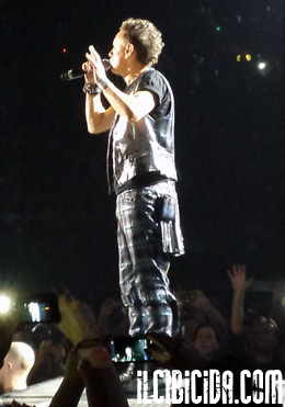 Sa che a un certo punto ancora Gahan volteggerà su sé stesso brandendo l’asta del microfono. Sa che prima lui e poi Gore passeggeranno sulla lunga pedana che parte dal palco e finisce lì, in mezzo al parterre. Sa che A Pain That I’m Used To ormai la ripropongono solo nella sua versione remix. Sa che durante Enjoy The Silence il pubblico avrà il suo momento di gloria, incitato da Dave a cantare a squarciagola il refrain.