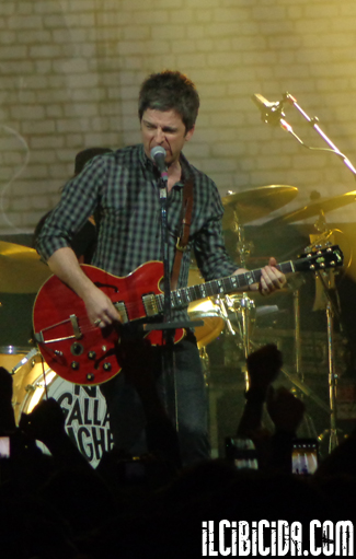 Alle 21 in punto sale sul palco Noel Gallagher con i suoi High Flying Birds, tra i quali spiccano l’ex Zutons Russel Pritchard al basso e Mikey Rowe, tastierista live degli Oasis nel Be Here Now Tour. Ovviamente la scena è tutta per Gallagher che, nonostante un raffreddore che lo perseguita dalla precedente data parigina, è protagonista di un concerto eccellente, a detta sua il migliore del tour fino a questo momento. Noel distribuisce sapientemente all’interno della setlist qualche canzone degli Oasis tra i suoi brani da solista e la mescolanza funziona.