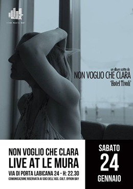 «I miei piani per il sabato sera / tengono conto ormai solo di dove vai / mentre tutto precipita / I miei piani per il sabato sera / tengono conto ormai solo di dove sei / tutto il resto non conta più». Facile cominciare così. Assolutamente fuori discussione. Ma quando i tuoi piani per un sabato sera romano, guarda caso, prevedono un concerto dei Non Voglio Che Clara, in fondo potrebbe anche esser peccato non farlo notare. Il gruppo di Belluno torna a Roma dopo quasi un anno, carico di aneddoti sulla propria città natale e fresco della ristampa di “Hotel Tivoli”.