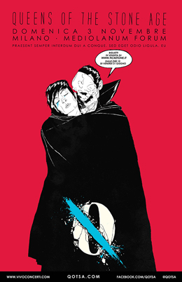 Alle 21.25 è la volta di Homme e soci. Al centro del palco si piazzano lui e il braccio destro Troy Van Leeuwen, gli altri dietro. Si parte con Keep Your Eyes Peeled, dall’ultimo album, ma subito dopo è già il momento di far ribollire il Forum con Millionaire e No One Knows: esecuzioni al fulmicotone, l’ex Mars Volta Jon Theodore (recentissimo il suo ingaggio) picchia come un forsennato sulla batteria e giù dal palco si scatena in un nonnulla il putiferio.