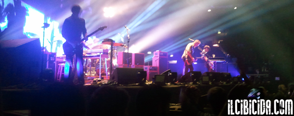 Homme, dal canto suo, è in forma ed ha voglia di interagire col pubblico, scambia qualche parola in italiano («Siete bellissimi!», dirà), gesticola e non perde occasione per ricordare quanto è contento di essere nuovamente in Italia. Van Leeuwen, come di consueto, fa il suo show nello show attraversando tutto il palco e passando da una chitarra all’altra. In tutto ciò, alle spalle della band vengono proiettati dei visual fantastici, animazioni che riprendono per gran parte gli artwork degli album e che vanno a tempo coi brani proposti dai QOTSA.