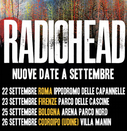 Al ritorno on stage i riflettori illuminano Thom Yorke al centro del palco, chitarra acustica fra le braccia e voce flebile: Exit Music (For A Film), esecuzione a dir poco emozionante di un brano epocale. Il battimani del pubblico accompagna fin dalle prime note House Of Cards, la “love song” presentata da un Yorke che ne ha anche per Berlusconi: The Daily Mail, altra traccia da “From The Basement”, è tutta per lui. La chiusura del primo bis vede Myxomatosis e l’altro classico Paranoid Android, da quello spartiacque della carriera dei Radiohead che fu “Ok Computer”. Yorke incita il pubblico con un “andiamo!” e giù di nuovo dal palco. Ancora tre pezzi per questa data romana degli inglesi, la prima del loro mini-tour italiano: Give Up The Ghost, a completare il quadro da “The King Of Limbs”, poi Reckoner (fra le più applaudite) e infine un’accelerata Everything In Its Right Place, che apre “Kid A” e chiude il concerto dopo 2 ore e 10 minuti dal suo inizio. I Radiohead si confermano, se mai ci fosse stato bisogno di una conferma, la miglior band al mondo, per quel loro non cullarsi mai sugli allori, per l’atavica voglia di superare se stessi e le aspettative nei loro confronti e, soprattutto, per performance dal vivo – come questa tappa romana – assolutamente sopra la media emozionale e qualitativa di qualsiasi altra formazione contemporanea. Bisognava esserci, anche dopo un rinvio di tre mesi, anche dopo 3 ore di coda, anche con l’automobile piazzata sui rami di un albero.