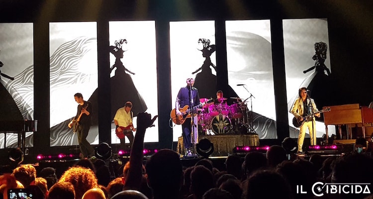 A Bologna molto è cambiato da 18 anni fa. I tassisti guidano spericolati come lo facciamo noi terroni e al palazzetto di Casalecchio (oggi Unipol Arena) non giocano più le formidabili squadre di basket bolognesi perché precipitate in un profondo declino. Si potrebbe stare ore a parlare del rock nell’anno del 2018. Di come certo linguaggio sia sparito come la Seven Up dai supermercati. Non è colpa di nessuno, non è di certo colpa nostra, intendo mia, di Nico, Bresmes, Vittorio e Manu che ci presentiamo al palazzetto in taxi e con diversi chili in più. Le magliette sono le stesse in un misto di romanticismo e patetica autoironia da social. Anche Billy spunta visibilmente invecchiato dall’intercapedine di due enormi schermi, è vestito con abiti eccentrici come da tradizione. Ma stavolta fa una cosa che non ci saremmo aspettati: dà l’addio a se stesso. Quanto l’abbiamo bastonato durante la sua assenza: “Che cavolo fa, è uno sfigato. Come s’è ridotto” (quasi parlassimo di noi). Anche la foto postata su Instagram che lo ritraeva nella mattinata bolognese seduto sulle scalinate della Basilica di San Petronio a Piazza Maggiore, lo mostravano stanco, con un cappellino moscio e un’espressione da “che cavolo ci faccio qui”. E invece no. Si presenta alle 21:00 in punto con una meravigliosa acustica in braccio e, alle spalle, alcune (ancor più meravigliose) immagini del suo passato: lui con i fratellini, lui con la madre, con i suoi amici, nei giochi, nel viaggio più entusiasmante della vita: l’adolescenza. Super 8 rarissimi e da brividi. Billy uccide se stesso, dicevo: “The killer in me, is the killer in you” sembra dire a quel paffuto ragazzino che è stato. Disarm ci scuote come una sberla che non t’aspetti. Ed è uno stargate da cui passano amici vecchi e nuovi: James Iha, Jimmy Chamberlin in primis e poi Jeff Schroeder, Jack Bates, Katie Cole (rispettivamente chitarra, basso e tastiera) per quello che non è solo un concerto degli Smashing Pumpkins ma più realisticamente uno spettacolo di una nuova entità composita e multicolore. Billy abbraccia James come Bowie abbracciava Mick Ronson nel famoso video di “Starman”, un’amicizia tormentata, minata dalla lucida follia di entrambi (e forse dai rispettivi fallimenti). Alle spalle una carrellata di video e illustrazioni rinfrescano il già ispiratissimo immaginario dei Pumpkins così affezionati agli anni ‘30, all’espressionismo tedesco, al sacro profanato di putti, santi, macchine votive che tagliano in due il pubblico. Ah l’immaginario! Che bello poter usare ancora questa parola nel live report di una rock band! Perché i Pumpkins sono sempre stati una luna con un ghigno, angeli ironici, una mongolfiera persa nel blu di un cielo di cartapesta, due gemelline temibili, una bicicletta che scricchiola, un falò d’inverno. La setlist è composta di soli classici, e noi ce la godiamo. Corgan ci invita al canto quando parte con Thirty-Three: “Ho viaggiato qua e là, avanti e indietro, ma negli stessi vecchi rifugi trovo tutt’ora i miei amici”. Io la prendo come una dichiarazione a noi cinque o comunque all’intero pubblico bolognese venuto per stare tra amici ascoltando una band amica. “Billy è brillante!” mi urla Nico, e ha ragione. Si cambia d’abito: ora imbonitore, ora capo circo. La sua faccia è quella di uno scheletro, poi quella di un divo, quindi quella di un jolly stampato su un francobollo. Alle sue spalle scorrono effigi stilizzate che contemplano sempre una donna bionda: prima felice, poi in ginocchio, quindi elegante e vestita da ballerina di charleston, alla fine tetra, trucco sbavato e ieratica come una sfinge. Sono le sue donne, tutte le sue donne, sintetizzate in un’unica iconografia. Sua madre, sua moglie, il sesso femminile, le sirene del successo. Quando va al pianoforte per For Martha, nell’enorme vidiwall la donna bionda è sua madre nelle vesti di una ballerina e lui, William, è conciato da piccolo damerino. Non c’è la tristezza del brano che puntellava la coda di “Adore” però. Ora l’addio è una danza che si conclude forse con un nuovo inizio. Ed è questo che emerge dalla voce di Corgan: avere una nuova opportunità, come l’hanno avuta tutti. Una nuova possibilità, sì, come l’abbiamo avuta noi. Diciotto anni dopo.