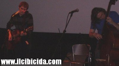 Le canzoni sono eseguite con eccezionale cura e Pete, sebbene il contrabbasso gli sia stato prestato per l’occasione, riesce subito a far suo lo strumento e suona con passione e trasporto accompagnando le note con vocalizzi e controcanti dai toni sorprendentemente gravi. Il duo prosegue con Michelle’s Cabin, pezzo strumentale in cui Pete suona una sega con l’archetto producendo spettrali onde sonore. Poi arriva il momento di brani più solari tratti dai precedenti lavori come Out, Fitzroy Strongman e Otherwise Open. L’atmosfera adesso è di assoluta intimità: merito anche degli intervalli tra una canzone e l’altra, nei quali Pete, rivela le sue origini catanesi, con sommo stupore dei presenti, o racconta con ironia della sfortuna che sta perseguitando il gruppo in questo tour italiano e che stasera impedisce di utilizzare il pianoforte a causa dell’irreperibilità della chiave. E’ facile smarrirsi tra i suoni delicati e la magica atmosfera creata dai Sodastream. Così, quando i due si congedano, dopo aver eseguito Constant Ships, gli spettatori sono ancora rapiti e per evitare un ritorno alla realtà eccessivamente brusco li richiamano sulla scena. Il bis è affidato a Welcome Throw e Chorus Line, che chiudono la serata con le ultime emozioni. Prima di andar via ci dirigiamo verso il banchetto del merchandising che stasera offre anche la possibilità di scaricare il live appena eseguito su lettore mp3 o su pen-drive. Qui veniamo raggiunti dai due artisti che con assoluta disponibilità soddisfano richieste di autografi e foto ricordo.