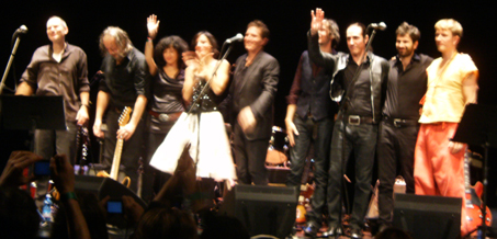 Ed è questo squadrone che arriva al Teatro Palladium. Di fronte il palco trabocca di strumenti, il pavimento sembra un giardino sovrastato da fronde metalliche di microfoni, chitarre, fili, pianoforti, corde, spine con gli Strangers a danzare là in mezzo. Ci sta Carlens allacciato in un completo orientale con una chitarrina tutta tappezzata di adesivi, ci sta Giorgia Poli con una gonna gonfia quasi da dervisci rotanti, ci sta Rodrigo D’Erasmo con una giacca a frack. Agnelli ha una coda tibetana, Steve Wynn è invece molto tradizionale, gli altri sfoggiano il solito look da desert session (gli stivali a punta di Hugo Race, il cinturone della Collica). Se c’è un aspetto che trascina immediatamente dentro a questo giardino di suoni, è come gli Strangers vadano alla ricerca della fibra del rock. Una fibra bellissima, chiarissima, nascosta sotto centimetri di corteccia elettrica. Esattamente come succede per i pezzi che Hugo Race porta in regalo al gruppo: bui, scontrosi, tenebra, ma che lavorati senza fretta dal supergruppo, arrivano a un’apertura universale. E ognuno suona due e più strumenti come fosse una grande session di prova: Basile alla batteria e alla chitarra, Agnelli tra voce, piano e chitarra, Parish batteria e altro, Collica in diverse salse.