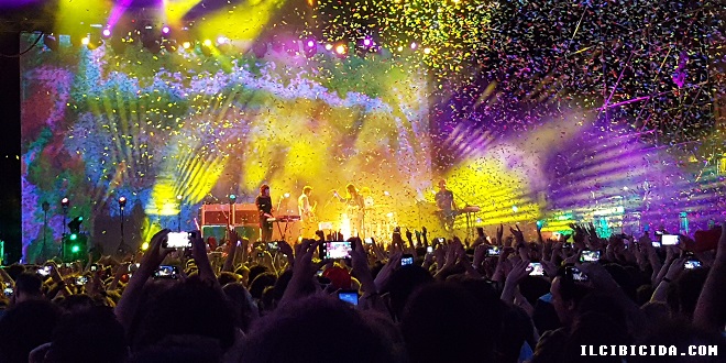 Sarebbe riduttivo parlare di un live dei Tame Impala limitandosi al marcato aspetto visivo delle loro performance: i visual psichedelici alle spalle, le luci acide sul pubblico e sul palco, i coriandoli sparati dai cannoni ai lati. Sarebbe riduttivo perché porrebbe l’attenzione su elementi, sì, importanti ma assolutamente secondari rispetto a quella che è la dimensione odierna della band australiana, una delle poche che riesce a mettere d’accordo un po’ tutti, a prescindere dal background e dall’annosa contrapposizione alternativo/commerciale.
