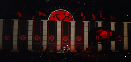 Come se non bastasse, di tanto in tanto giganteschi pupazzi gonfiabili (disegnati dal vignettista satirico Gerald Scarfe) si ergevano mostruosi sul palcoscenico, ognuno raffigurante uno dei fantasmi che tormentano il protagonista durante la storia, costringendolo a costruire il suo muro: il maestro che vuole “controllare il pensiero” dei suoi alunni durante Another Brick In The Wall, Part 2, la madre iperprotettiva durante “Mother” che ha le braccia a forma di muro, la perfida moglie/mantide per Don’t Leave Me Now. Il secondo tempo, invece, ci ha riservato una parata in stile fascista con tanto di bandiere e uniformi coi martelli incrociati e un pallone aerostatico nero a forma di maiale che si è librato sulle teste degli spettatori increduli. Che altro? Ovviamente la musica: ben 11 musicisti di altissimo livello hanno aiutato Waters a ricreare le atmosfere decisamente cupe e angoscianti del suo capolavoro, anche se, va detto, si sentiva molto forte l’assenza di David Gilmour alla chitarra e alla voce (nonostante il corista che cantava le sue parti lo imitasse quasi perfettamente). Di sicuro una bella fetta di pubblico (tra cui io) avrebbe dato il braccio sinistro per vedere lo storico chitarrista dei Pink Floyd apparire in cima al muro durante l’assolo di Comfortably Numb… ma questo, a quanto si dice, sarà un privilegio che toccherà solo ai fortunati spettatori delle date londinesi di questo lunghissimo “The Wall Live”.