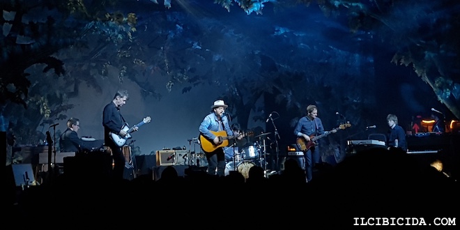 Dura oltre due ore la serata: la scenografia, semplice ma dal forte impatto con una sorta di bosco ricreato intorno alla band, si fa apprezzare e si lega perfettamente a ciò che esce dagli amplificatori; le tre chitarre sul palco, quella di Tweedy e poi Nels Cline e Pat Sansone, s’intrecciano tra loro fra acustico ed elettrico. Già, acustico ed elettrico, la meravigliosa dicotomia di un’intera insuperabile carriera.
